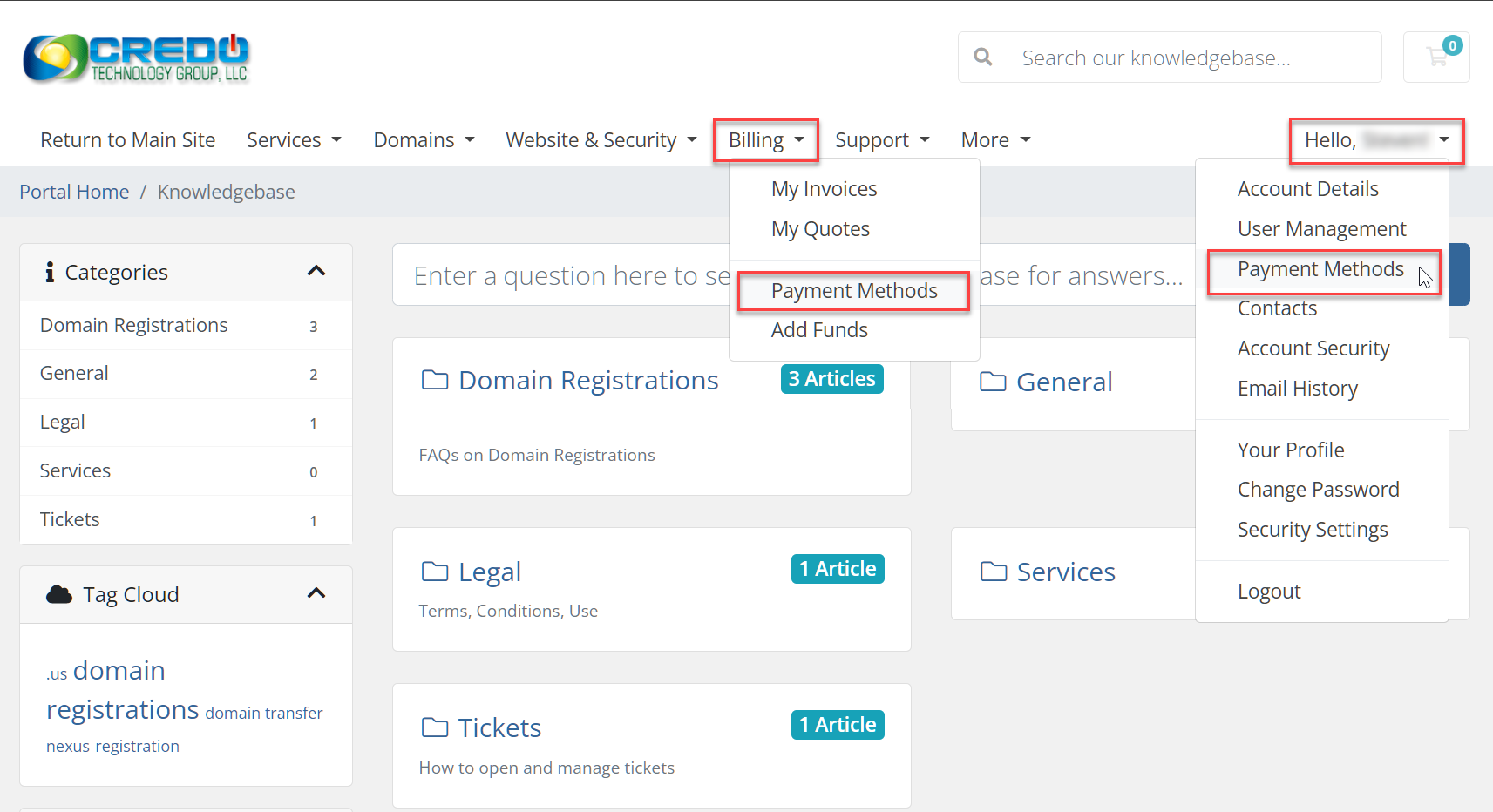 1. To Change payment, go to the top-right and click where it says Hello and then select "Payment Methods" or go to Billing in the menu and select "Payment Methods"